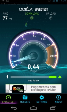 A utilização do aplicativo é bem simples, as informações são exibidas de maneira clara. Depois de baixar o aplicativo em seu smartphone Android você deve esperar ele encontrar o servidor mais perto de você e então basta apertar o botão "Begin Test". Feito isso ele iniciará o teste do seu ping e logo depois da velocidade do download, você pode acompanhar em tempo real a velocidade que os dados estão sendo baixados. Depois ele irá testar o upload, você também poderá visualizar no velocímetro do aplicativo qual é a velocidade do envio. Se você preferir, pode escolher um servidor manualmente, através das configurações.